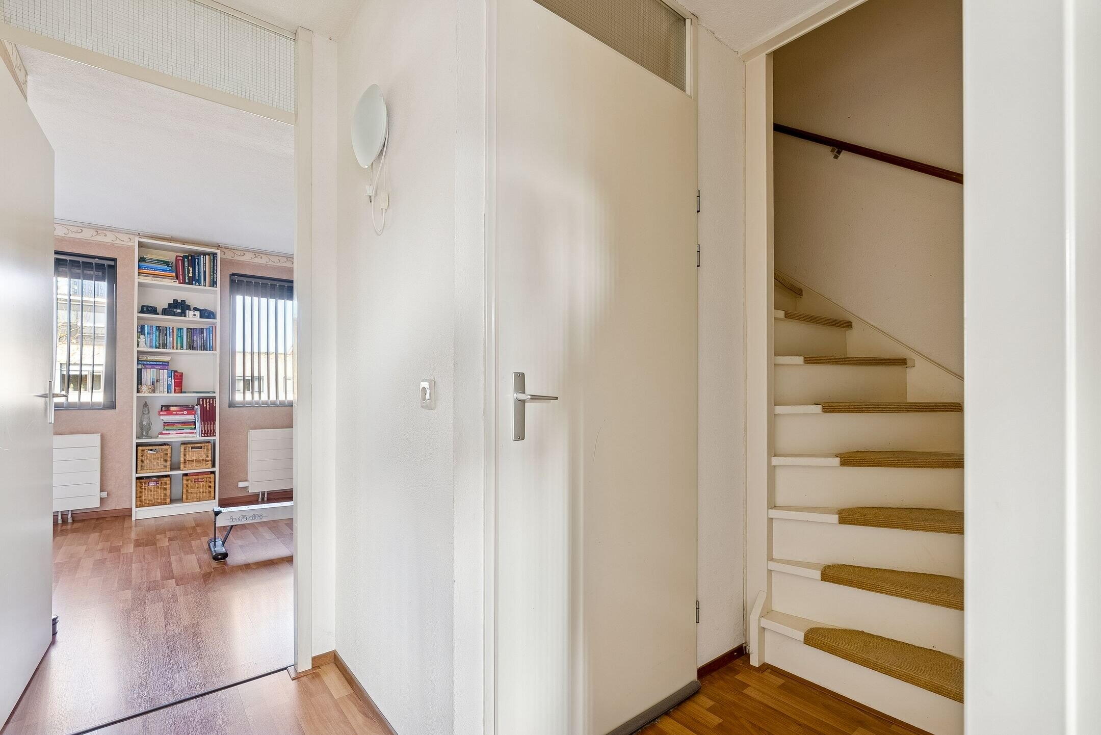 Bij binnenkomst in de hal heb je toegang tot het toilet, de meterkast en de woonkamer.