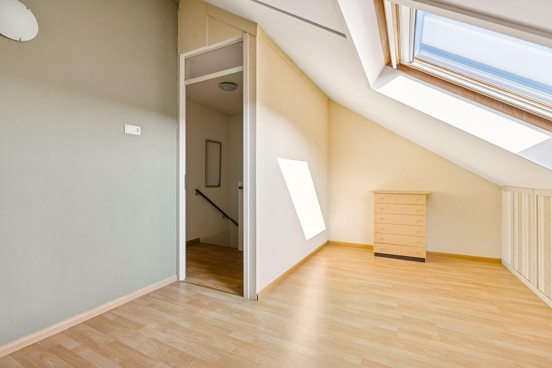 De overloop geeft toegang tot de badkamer en twee ruime slaapkamers. Het aantal kamers op deze verdieping is makkelijk uit te breiden door het splitsen van de kamers. Indien gewenst is er op deze verdieping vier separate kamers te realiseren. Op dit moment is een van de kamers voorzien van een zeer ruime inloopkast!
